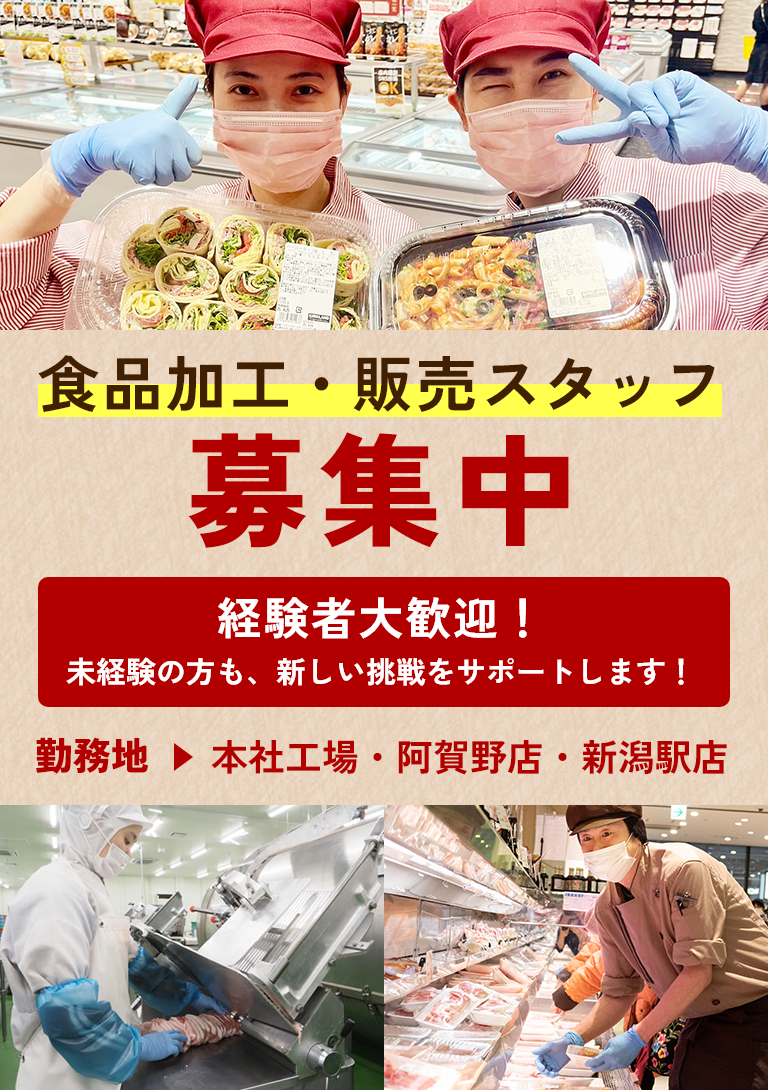 勤務地 | 佐藤食肉 本社工場/新潟県阿賀野市山倉1912-1 |